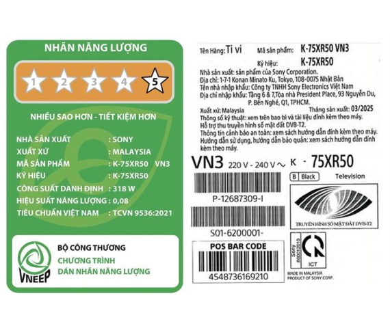 Google Tivi Mini LED Sony AI 4K 75 inch K-75XR50 2025