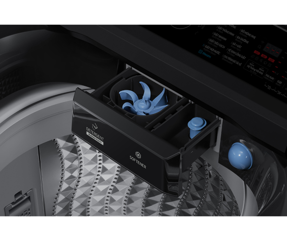 - Hệ thống vắt khô Air Turbo tăng tốc độ quay vắt giúp quần áo nhanh khô hơn, tiết kiệm thời gian phơi.