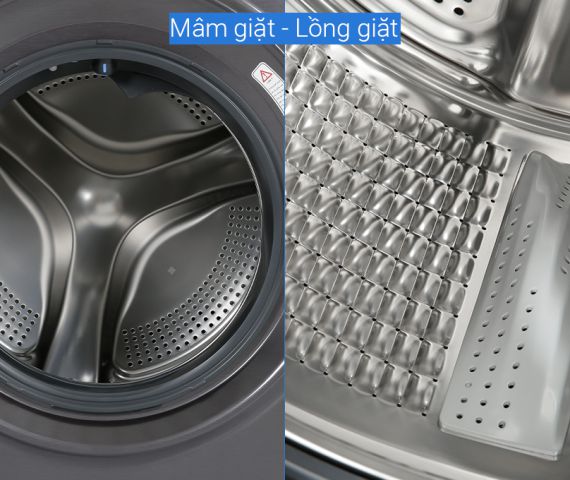 - Hơn nữa, lồng giặt Pillow được làm từ vật liệu thép không gỉ bền chắc, chống oxy hóa, thiết kế bề mặt dạng hình gối, khoét các lỗ cực nhỏ cỡ 2.5 mm giúp tăng hiệu quả giặt, giảm tình trạng xơ vải dính vào lồng giặt, bảo vệ chất liệu quần áo tốt hơn.