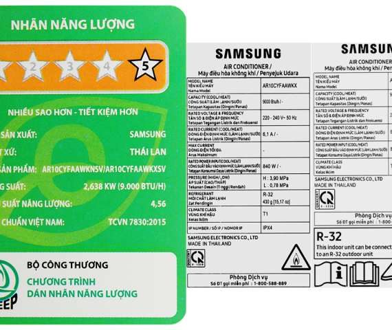 Nhãn năng lượng: 5 sao (Hiệu suất năng lượng 4.56)