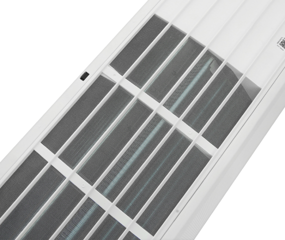 - Dàn lạnh có kiểu thiết kế độc đáo với lớp mặt nạ có nhiều họa tiết lỗ nhỏ li ti với chất liệu bền bỉ và phủ sơn màu trắng, phối hợp hài hòa với các nội thất khác bên trong căn phòng.