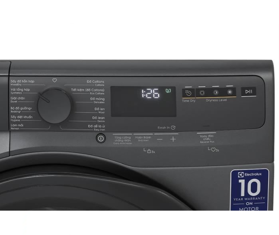 - Máy được trang bị bảng điều khiển song ngữ Anh - Việt, phím điều khiển cảm ứng, nút nhấn, núm xoay kết hợp màn hình hiển thị giúp bạn dễ dàng thao tác chương trình sấy.