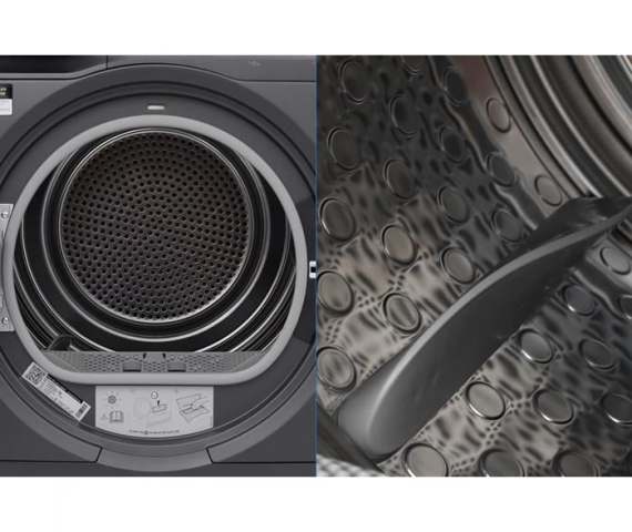 - Công nghệ sấy đảo chiều Reverse Tumbling mang đến hiệu quả chống nhăn, giúp quần áo không bị xoắn rối nhờ lồng sấy chuyển động và đảo chiều liên tục.