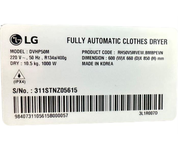 - Vỏ máy LG 10.5 kg DVHP50M được làm từ chất liệu kim loại sơn tĩnh điện, cùng lồng sấy làm bằng thép không gỉ mang lại tính thẩm mỹ cao, hạn chế các mảng bám vào lồng sấy.