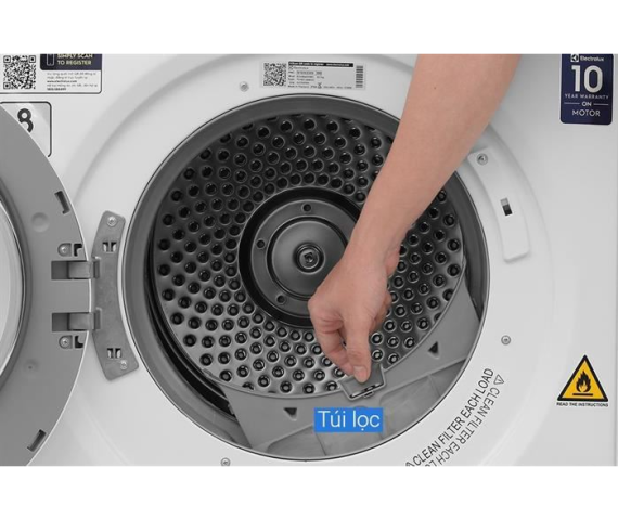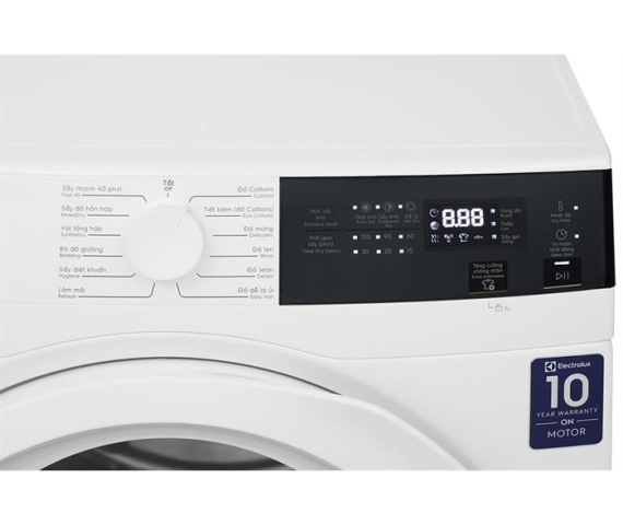 - Máy sấy Electrolux sử dụng động cơ truyền động gián tiếp (dây curoa) giúp máy vận hành êm ái, giảm tiếng ồn và tiết kiệm điện năng.