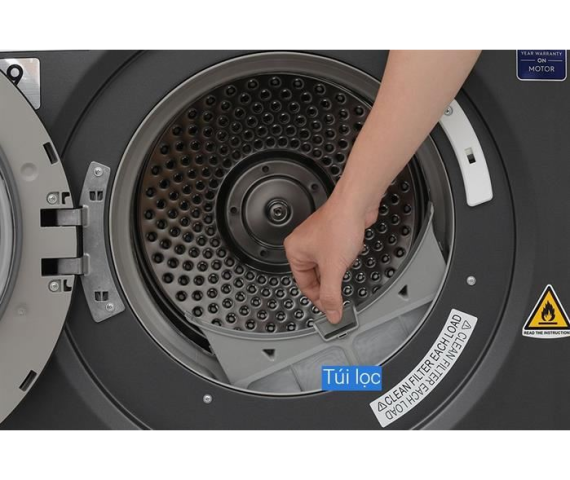 - Hỗ trợ đặt máy úp ngược lên máy giặt giúp tiết kiệm không gian, tối ưu hóa diện tích khu vực giặt sấy.