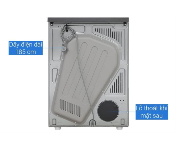 - Máy hoạt động theo nguyên lý thông hơi: không khí nóng được thổi qua quần áo để làm khô và thoát ra ngoài. Do đó, máy nên được đặt tại nơi thông thoáng để đảm bảo luồng khí nóng ẩm được thoát ra hiệu quả.