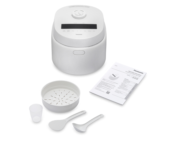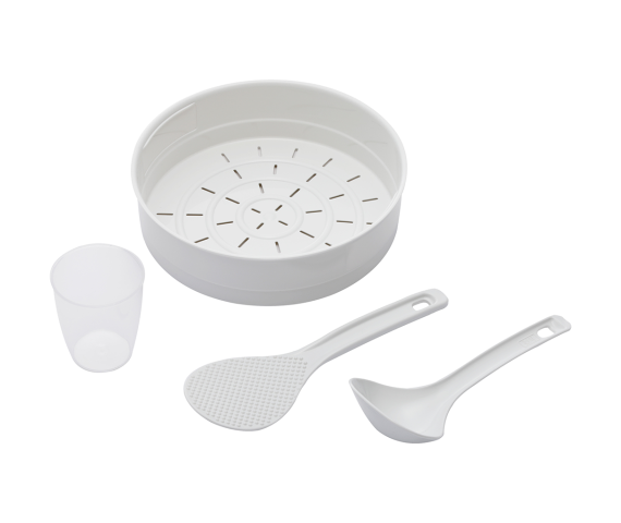 - Bộ phụ kiện đi kèm bao gồm xửng hấp, muỗng cơm, muỗng canh và cốc đong, đáp ứng đầy đủ nhu cầu sử dụng hàng ngày.