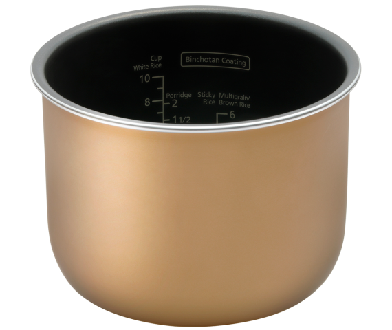 - Lòng nồi có độ dày 4 mm bền tốt, được cấu tạo từ 5 lớp với nhôm là chất liệu chính. Bên trong lòng nồi phủ lớp chống dính Binchotan có khả năng truyền nhiệt hiệu quả cho cơm chín đều, hạn chế bám dính và dễ làm sạch.