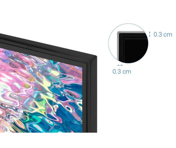- Smart Tivi QLED 4K 43 inch Samsung QA43Q60B được thiết kế với những đường nét cứng cáp nhưng không thô cứng, màn hình siêu mỏng, chân đế chữ L thanh mảnh, chắc chắn, tổng thể hài hòa quyện với mọi không gian. Cạnh viền mỏng giúp người dùng thưởng thức những khung hình không giới hạn.