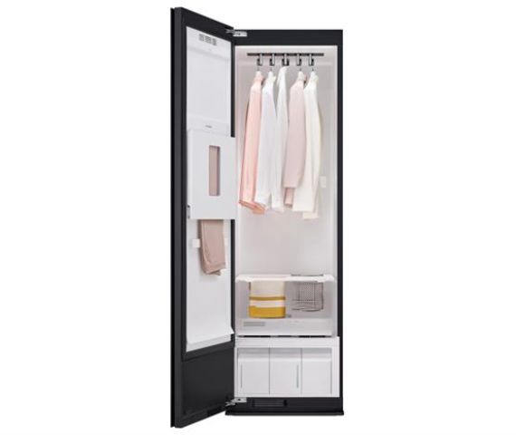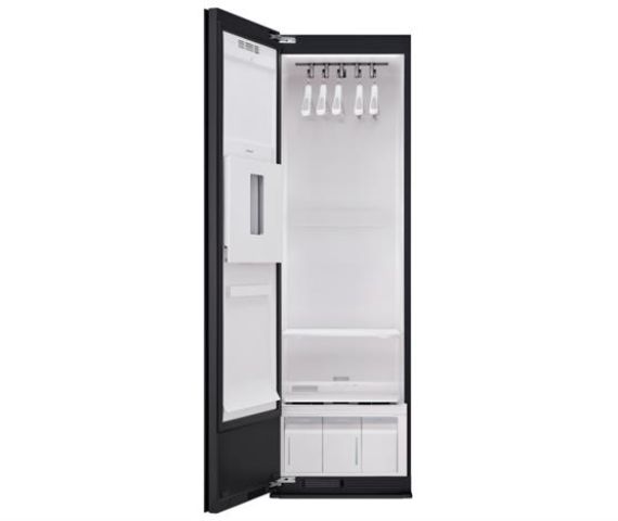 Bên trong tủ chăm sóc quần áo được bố trí hợp lý với 5 móc treo giúp giữ dáng quần áo và xử lý đồng thời nhiều loại trang phục khác nhau như vest, áo sơ mi, đầm dài,…