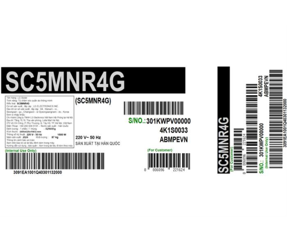 Tủ chăm sóc quần áo thông minh LG Styler Inverter 5 móc SC5MNR4G