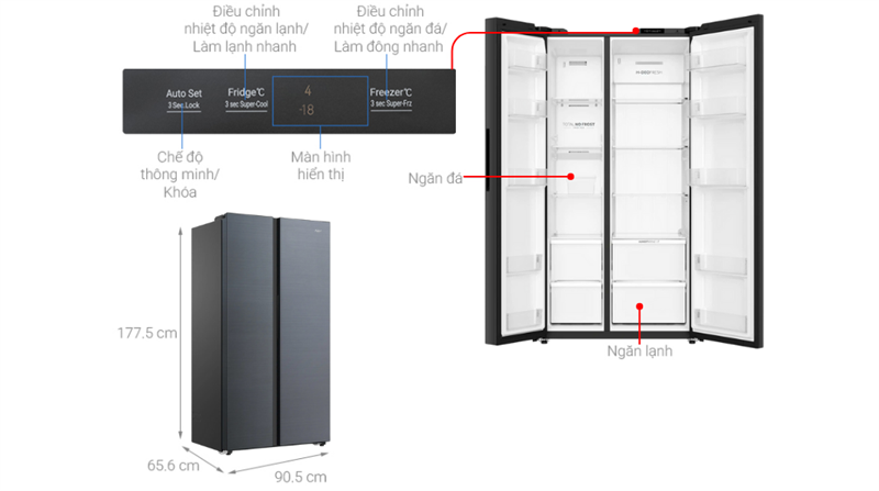 - Thiết kế side by side 2 cửa hiện đại và sang trọng