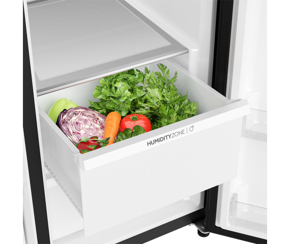 Tủ lạnh Aqua AQR-S633XA(SL) trang bị hai ngăn rau quả riêng biệt tăng cường không gian dự trữ rau củ, trái cây, giúp việc phân loại và tìm kiếm thực phẩm trở nên dễ dàng, thuận tiện. Độ ẩm trong ngăn được cân bằng ngăn việc mất nước, giữ rau quả luôn tươi ngon, mọng nước, giữ được tối đa lượng vitamin. Hộc rau quả có thể kéo ra hoàn toàn ngay cả khi cửa tủ chỉ được mở ở góc 90 độ, thuận tiện khi cần lấy hoặc cất thực phẩm.