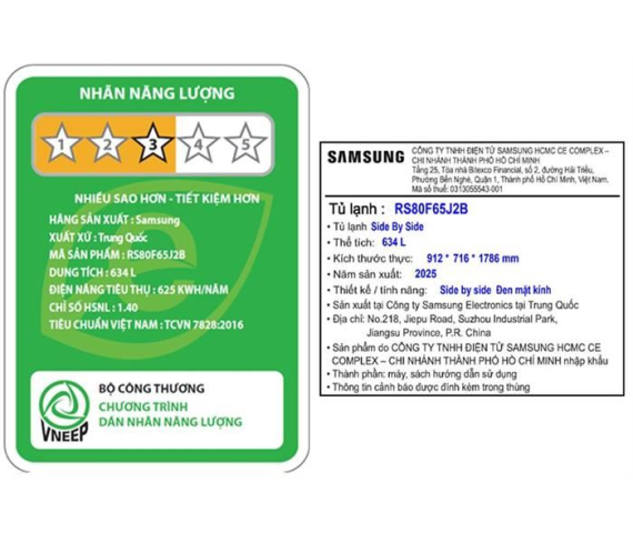 Tủ lạnh Samsung Inverter 634 lít SBS RS80F65J2BSV 2025