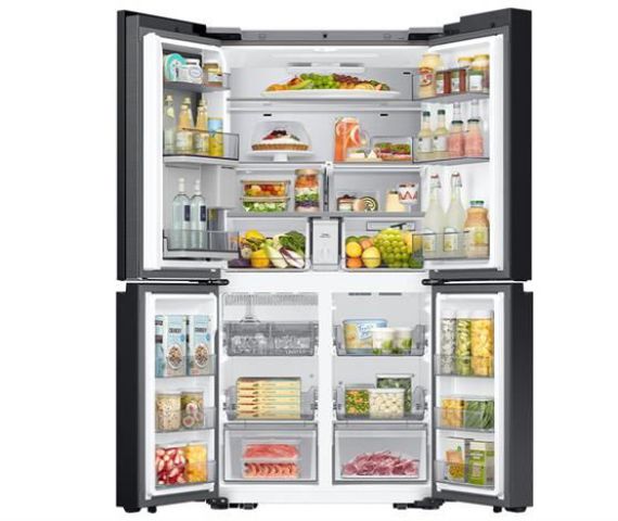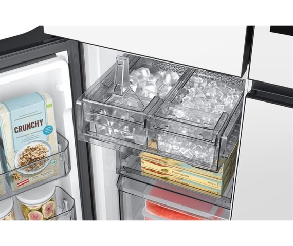 - Tủ lạnh Samsung Multi Door 4 cánh thuộc dòng cao cấp Bespoke, cửa tủ được làm bằng mặt gương soi mang lại cảm giác sang trọng cho căn bếp của bạn.